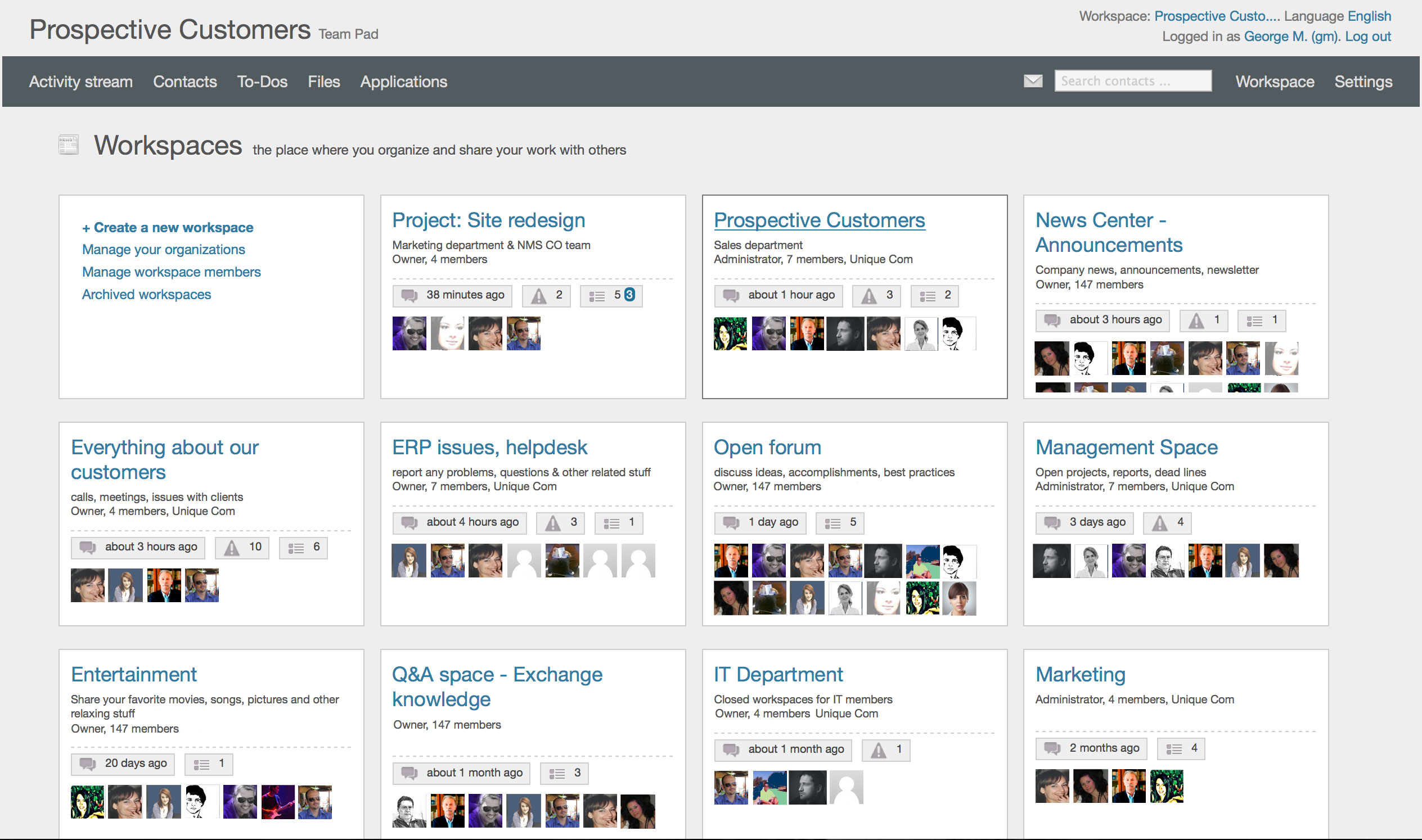 Build a workspace including the Contacts module and track your relations with the outside world.