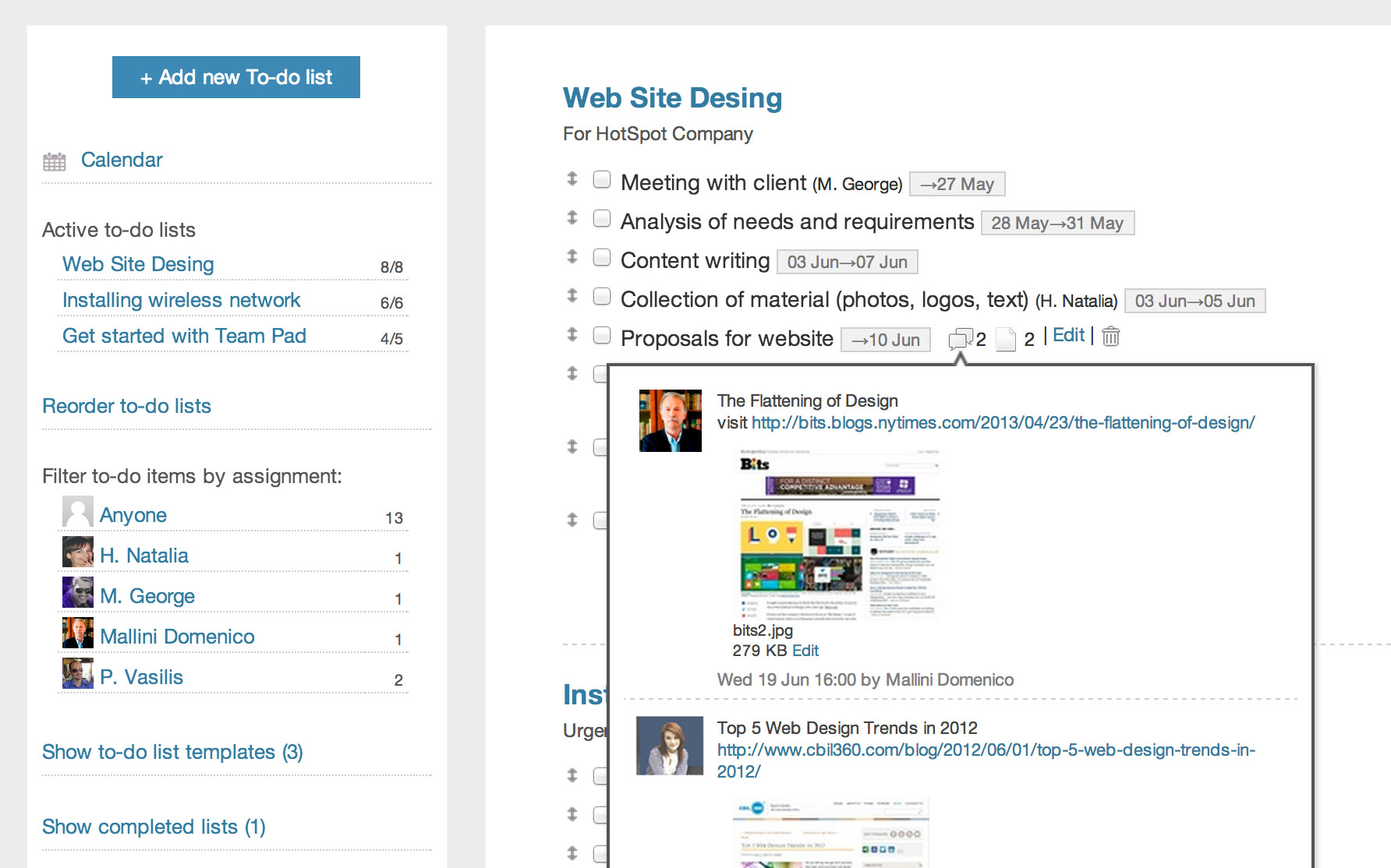 Get a quick overview of what's up next, who is involved and set start and end dates for a task.